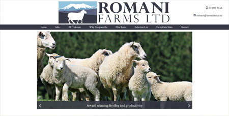 We worked closely with agribusiness writer, Richard Rennie who produced all the copy and guided us as to how best to present all the relevant information to visitors. In addition we used facebook and mailchimp to make contact with all of Romaini's client base.